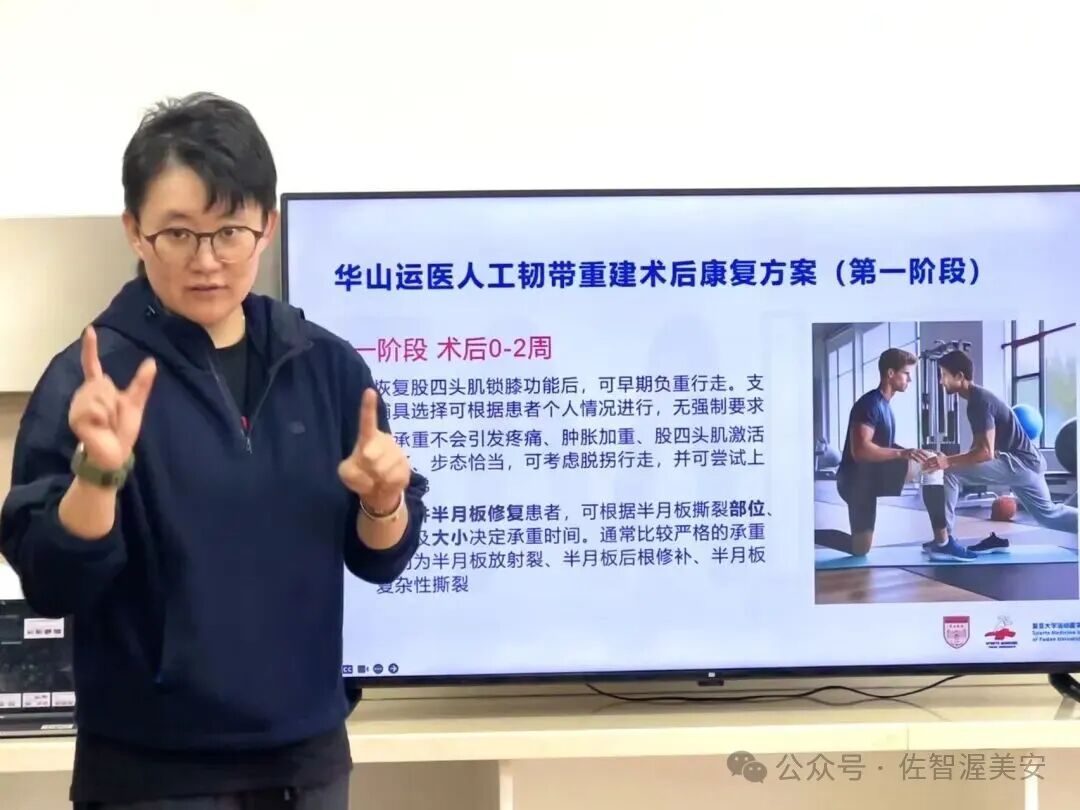 针对华山-曹路转诊联动的第二例患者,目前所处的术前康复阶段,孙老师点出了术前康复的精髓,不仅能够帮助手术达到预期效果,更是帮助患者加速术后康复周期的重要环节,“目前患者的下肢力量、运动功能的协调性还是不足的,这可以作为目前术前康复的主要课题。”孙老师指导道。