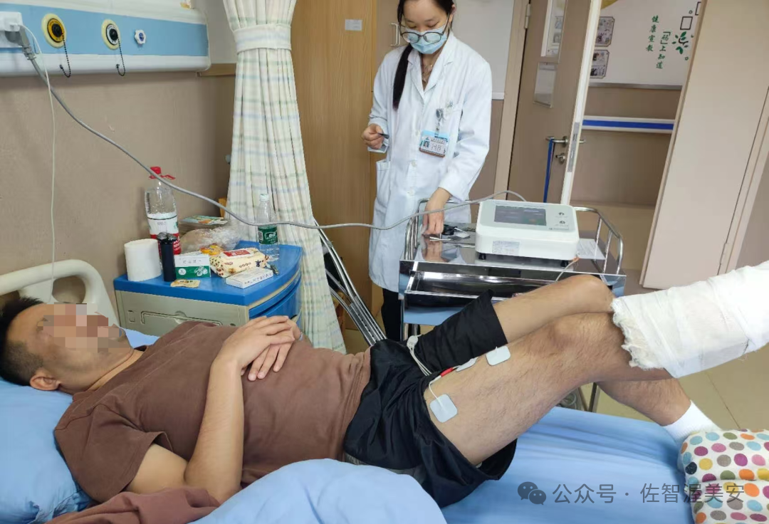 首例患者术后第三天,曹帆琦回到社区便依据学习成果制定了精准计划:早期以髋关节、膝关节被动活动保护跟腱修复;通过电子生物反馈技术激活股四头肌,开展四方位直腿抬高训练(3 组 ×10 个 ×3 秒 / 个);指导脚趾屈曲、张开练习,从被动过渡到主动;“考虑到患者有运动基础,第二周加入健侧支撑的单腿臀桥训练,避免长期卧床导致的肌肉衰退……”