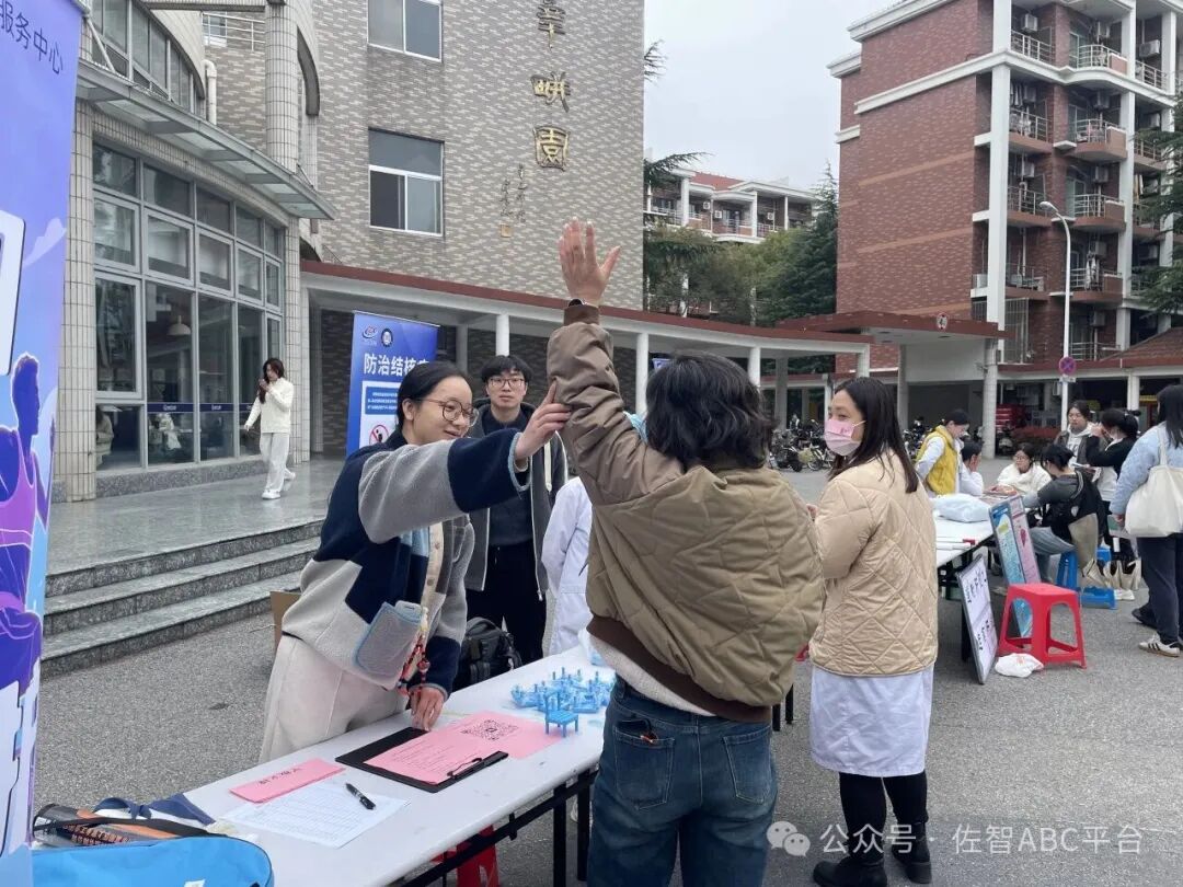 活动现场,在杉达学院食堂前小广场,我们设置了趣味运动挑战、运动损伤免费评估、科学运动科普咨询等多个互动环节。从中午 11:00 到 13:00,前来咨询、体验的师生络绎不绝: