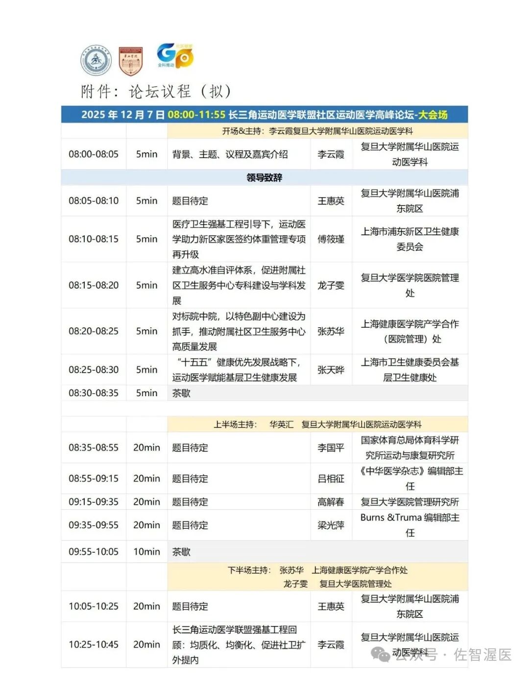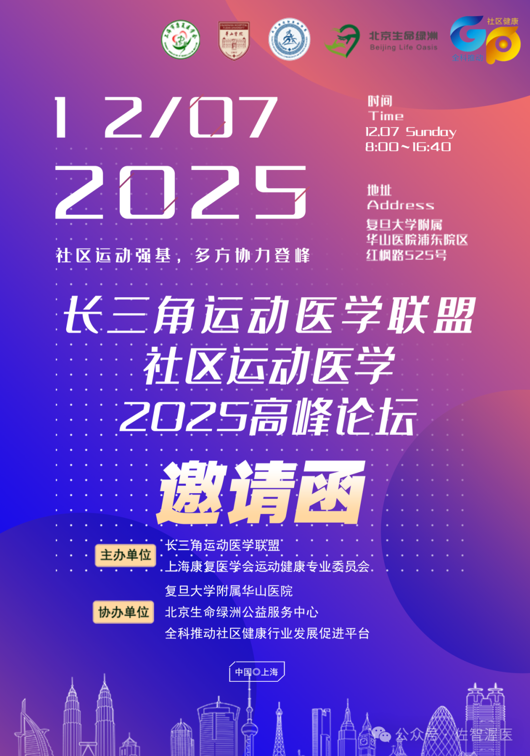 2025年12月7日,由长三角运动医学联盟、上海康复医学会运动健康专业委员会主办,复旦大学附属华山医院、北京生命绿洲公益服务中心、全科推动社区健康行业发展促进平台协办的“长三角运动医学联盟社区运动医学2025高峰论坛”将在上海隆重召开。