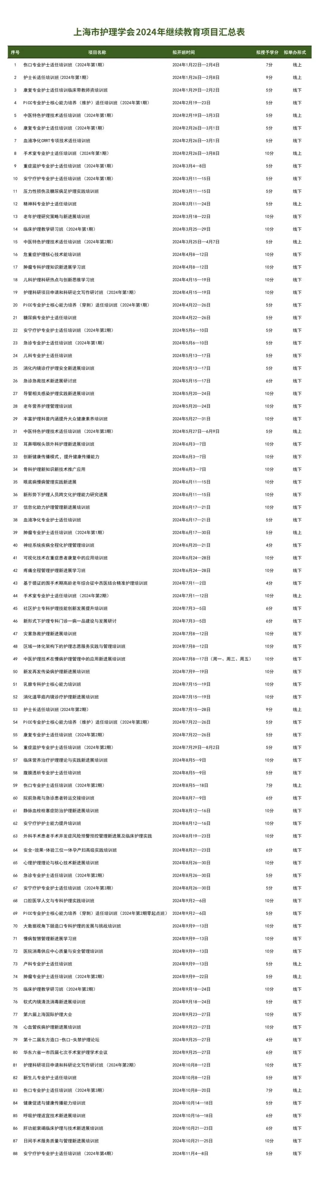 上海市护理学会2024年度继续教育项目办班计划如下。