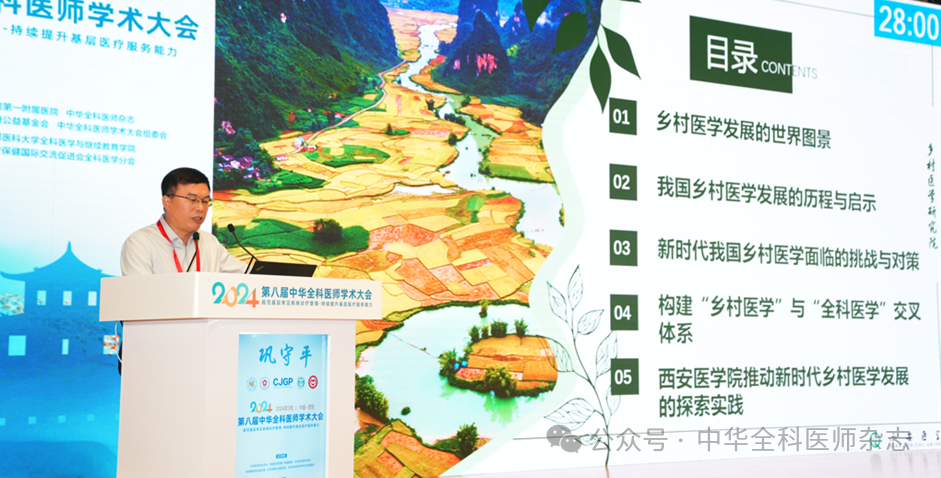 开幕式后,诸宏明副司长、王松灵院士、吉训明院士、梁万年教授、巩守平校长分别从加强基层卫生人才队伍建设、疾病防治、全科医学学科建设、乡村医学发展等多个角度做了《加强基层卫生人才队伍建设,推动基层卫生健康工作高质量发展》《稳态医学:维持健康和防治疾病的新策略》《患者驱动的医学创新》《构建中国全科医学学术共同体,促进全科医学学科高质量发展》《探索新时代乡村医学发展,厚植全民健康根基》的大会报告。