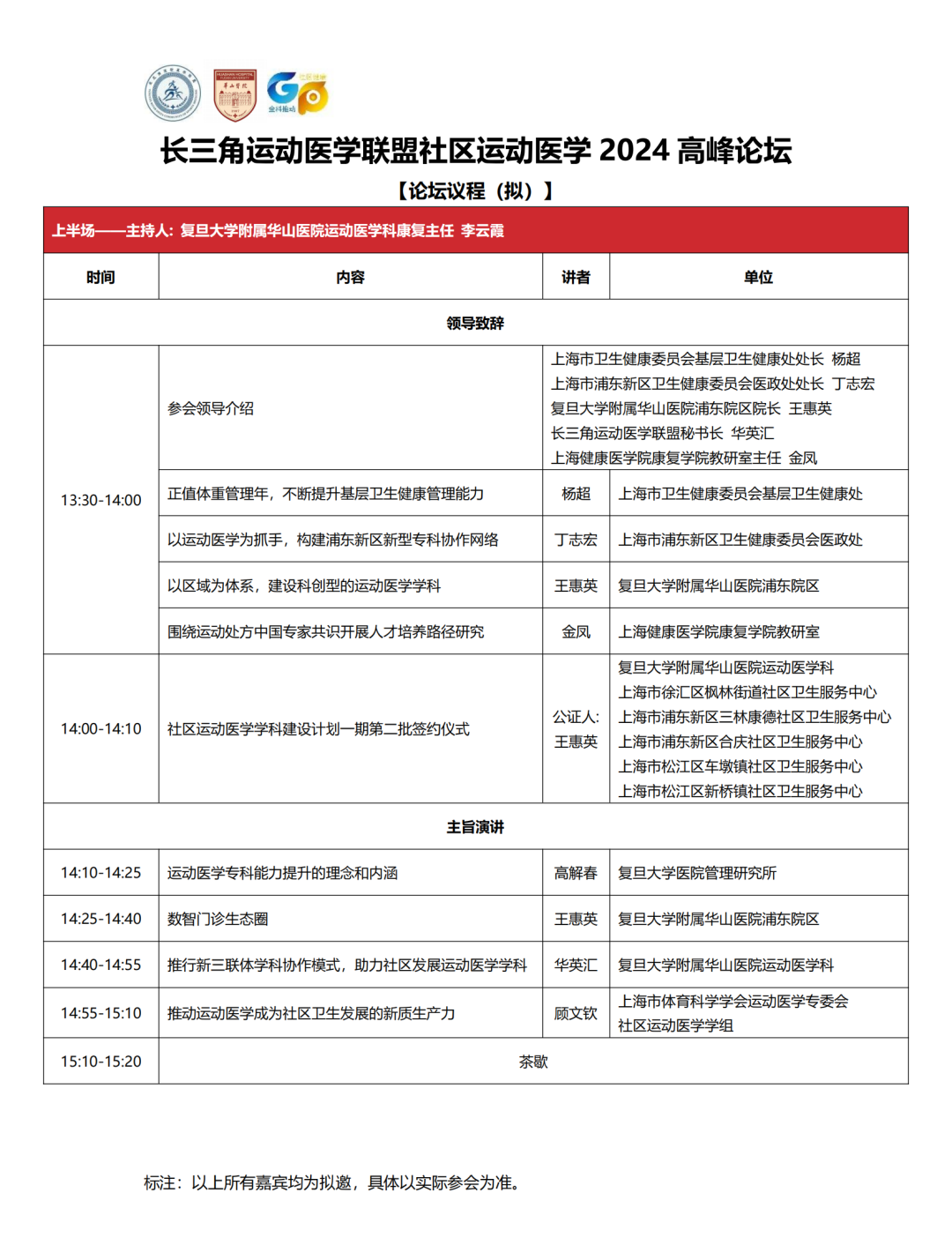 5天!5天!长三角运动医学联盟社区运动医学2024高峰论坛会议即将开幕