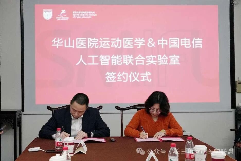 近期,复旦大学附属华山医院运动医学与中国电信围绕国内智慧医院领域前沿技术、政策要求与创新应用, 结合华山医院运动医学发展规划,通过资源共享、优势互补与联合研发,双方联合建立“人工智能联合实 验室”,并于11月27日在复旦大学附属华山医院总院举行人工智能联合实验室合作签约仪式。