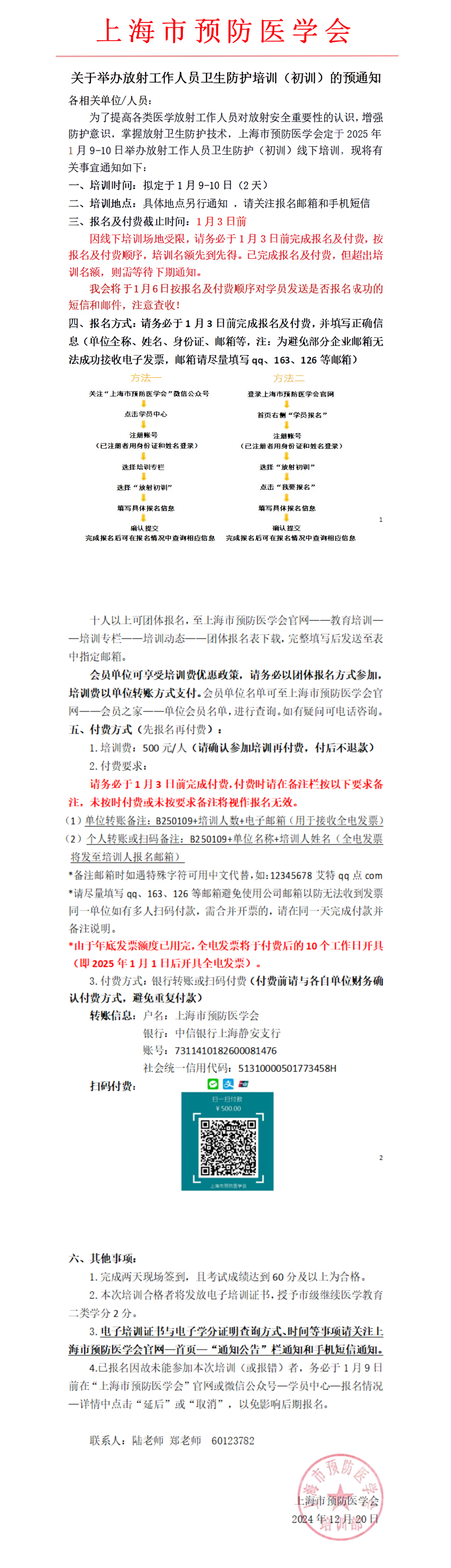 为了提高各类医学放射工作人员对放射安全重要性的认识, 增强防护意识, 掌握放射卫生防护技术, 上海市预防医学会定于 2025年1月9-10日举办放射工作人员卫生防护 (初训) 线下培训, 现将有关事宜通知如下: