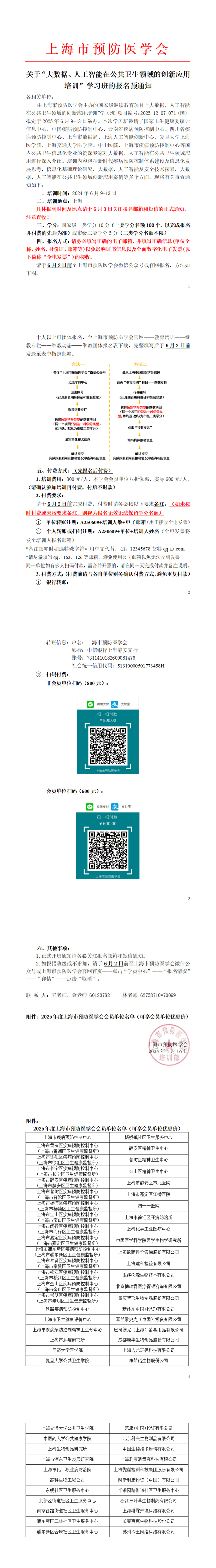 关于“大数据、人工智能在公共卫生领域的创新应用培训”学习班的报名预通知