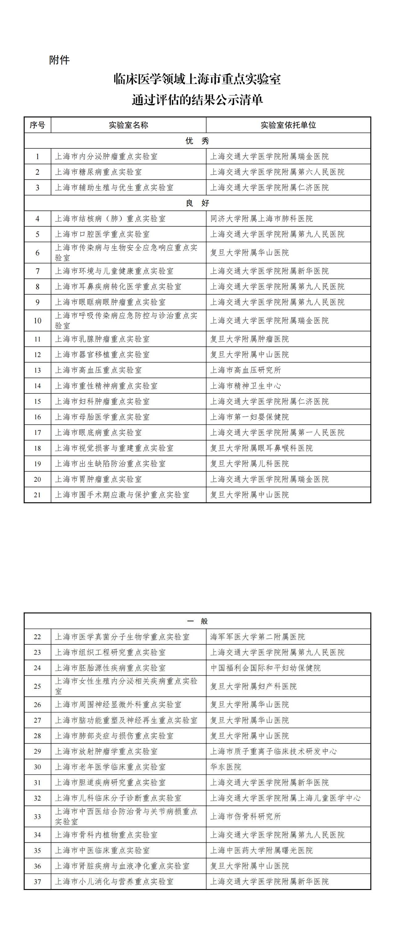根据市科技计划项目管理办法有关规定,现将临床医学领域上海市重点实验室通过评估的结果予以公示。