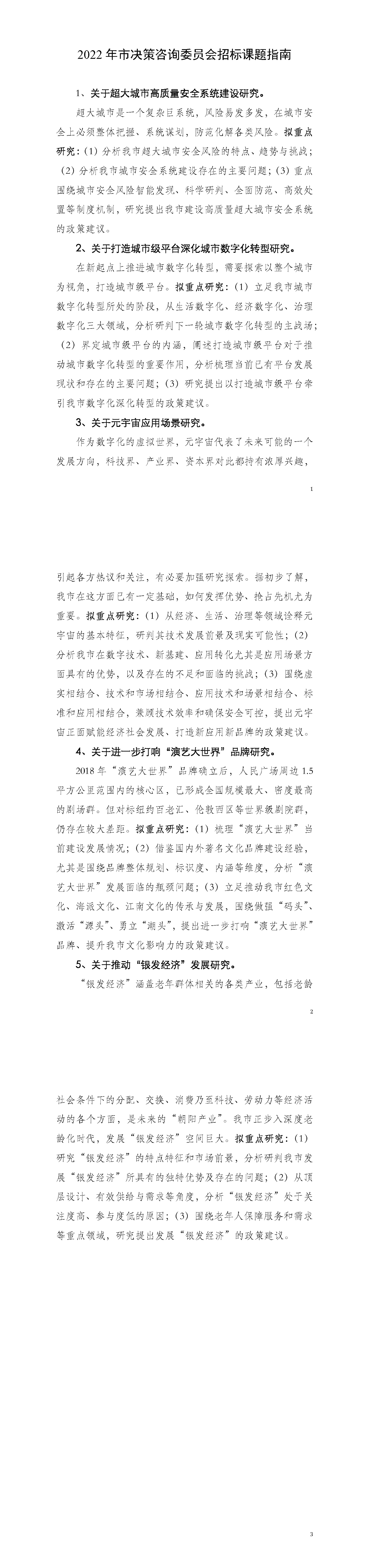 受上海市决策咨询委员会(以下简称“市决咨委”)委托,上海市科学技术委员会现公开发布《2022年市决策咨询委员会招标课题研究指南》(以下简称《指南》),各申报单位根据《指南》题目与要求组织申报。