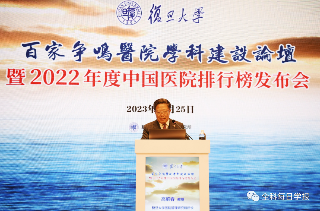 高解春说,复旦版中国医院排行榜“初心”和宗旨是为学科建设树一个标杆,一直强调专科排行榜更具意义和权威;相同学科间互比高低,如各医院神经内科和神经内科相比,疼痛科与疼痛科相较,很容易见上下,而各医院专科排名的总成绩分别叠加,就会“诞生”一个中国医院综合排行榜。社会大众普遍关注复旦版中国医院综合排行榜,但我们更希望大家关注复旦版中国医院专科声誉排行榜。