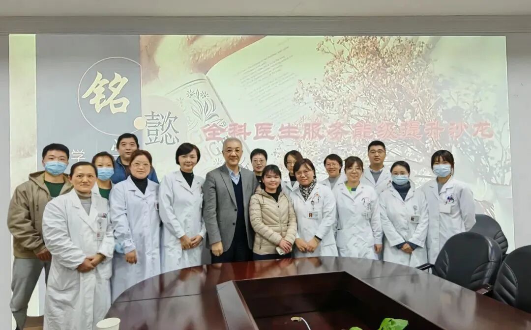 在华阳社区领导班子的陪同下于教授先后参观了中心的门诊部、住院部和康复中心。参观行程结束后在华阳社区会议室举行了全科医生能级提升专题沙龙。