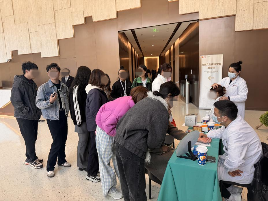 2025 年 3 月 18 日中午,华阳街道社区卫生服务中心在长宁区总工会、华阳街道总工会的支持下,在海粟文化广场 A 栋大堂为楼宇白领们举办了“楼宇白领健康周”医疗咨询服务主题活动。