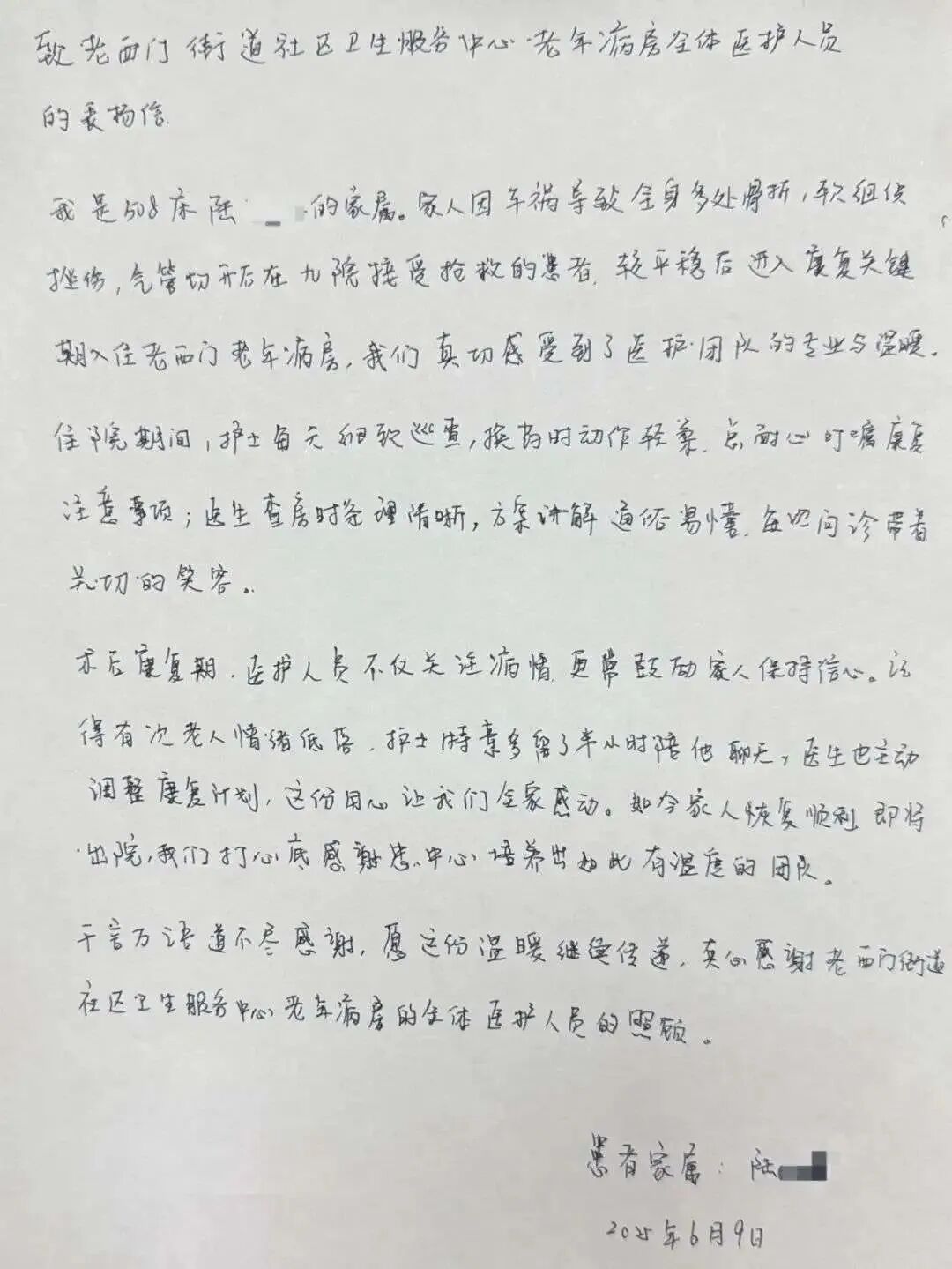 经过老西门社卫中心医护团队数周专业、精心的治疗和护理,陆老伯从当初卧床不起、生活无法自理的状态,逐渐实现了坐起、站立、辅助行走,直至独立行走。疼痛显著缓解,精神状态焕然一新。经全面评估,陆老伯各项功能恢复良好,达到了出院标准,真正实现了“转”危为安。这一切的“转”折,是生命力的顽强,更是专业诊疗护理在社区土壤里创造的“奇迹”。从九院危急重症的抢救到平稳后的社区康复关键期,中心病房成功完成了这次重要的“生命接力赛”,帮助陆老伯转危为安,重获新生。
