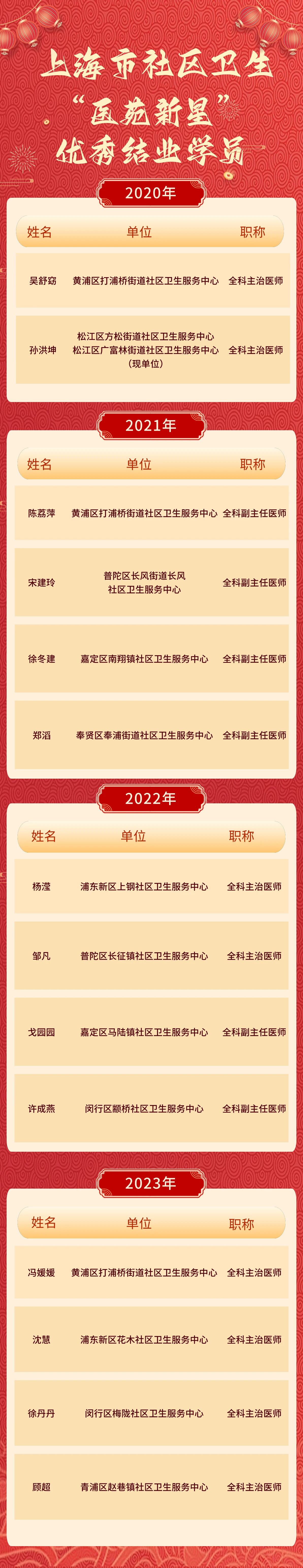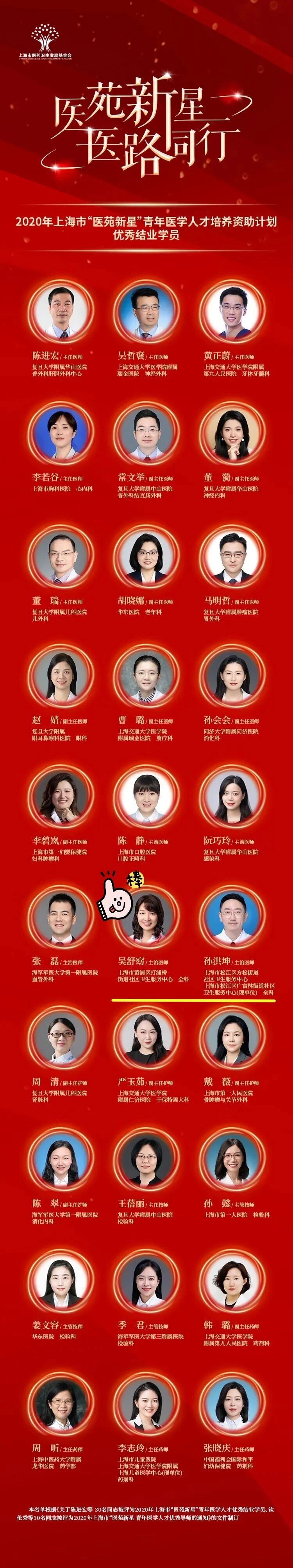 为进一步凝聚各方力量深化医药卫生体制改革,拓展青年医学人才培养选拔渠道,打造优秀的青年医学人才队伍。6月13日,2020-2023年上海市“医苑新星”青年医学人才培养资助计划结业仪式暨院士专家讲坛在上海展览中心举办。2020-2023年度上海248家社区卫生服务中心,共有14位社区医务工作者荣获上海市“医苑新星”青年医学人才培养资助计划优秀结业学员。