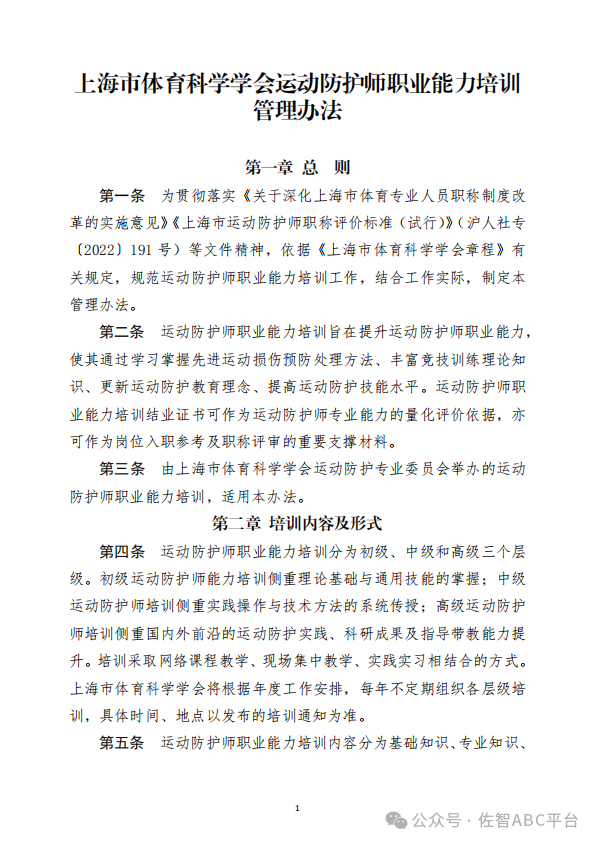 上海市体育科学学会|关于印发《上海市体育科学学会运动防护师职业能力培训管理办法》的通知