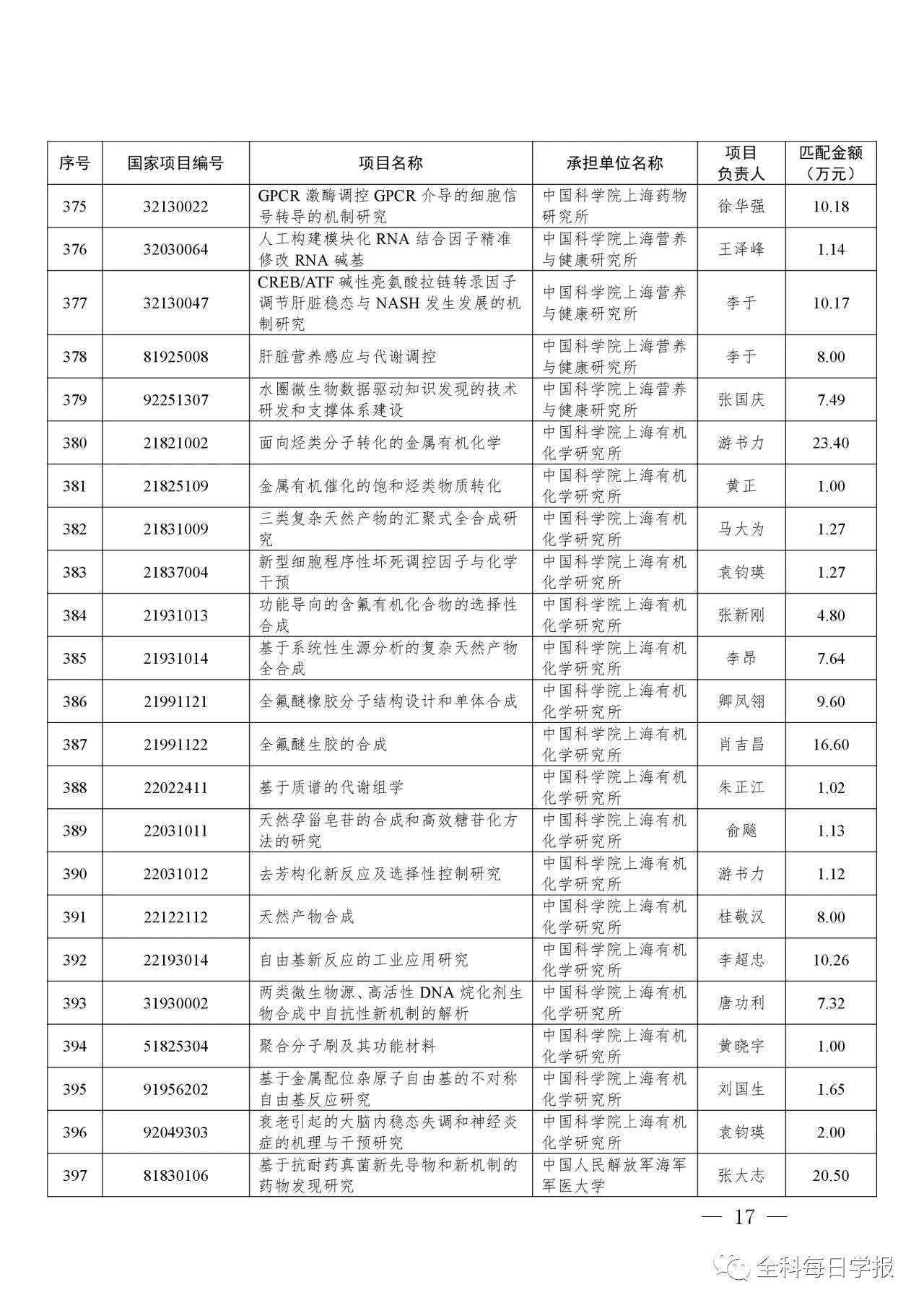 根据《国家重要科技计划项目上海市地方匹配资金管理办法》要求,国家重要科技计划项目上海市地方匹配资金2023年第三批匹配项目已经审核,并对首次申报项目进行公示。现将符合办法规定的项目纳入拨款计划,本次匹配项目397项,匹配资金总额6179.95万元。