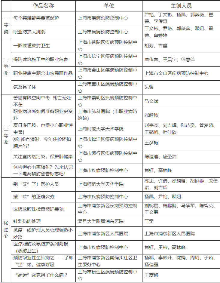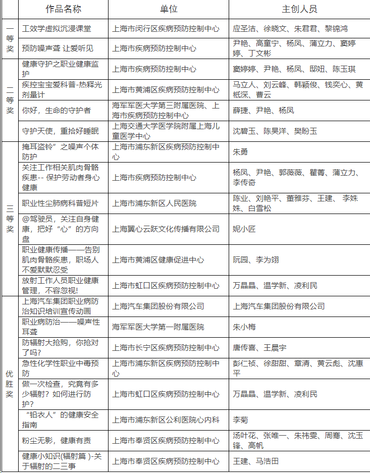 1.上海市第三届职业健康传播作品征集活动获奖作品名单