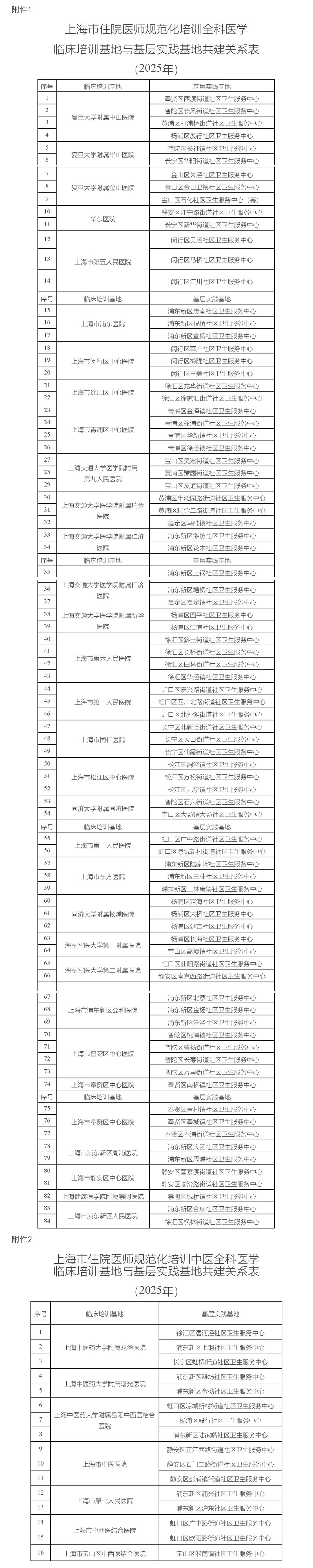 1.上海市住院医师规范化培训全科医学临床培训基地与基层实践基地共建关系表(2025年)