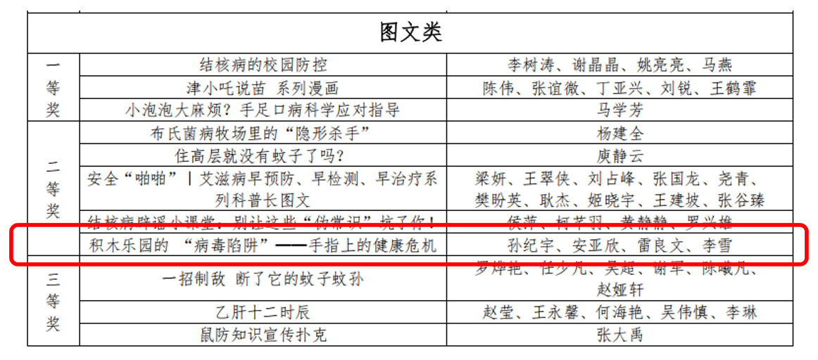 泗泾科普团队创作的传染病主题漫画《积木乐园的 “病毒陷阱”—— 手指上的健康危机》经过省级赛区比赛和全国总决赛,最终斩获“2025中国健康科普大赛”传染病主题图文类二等奖!