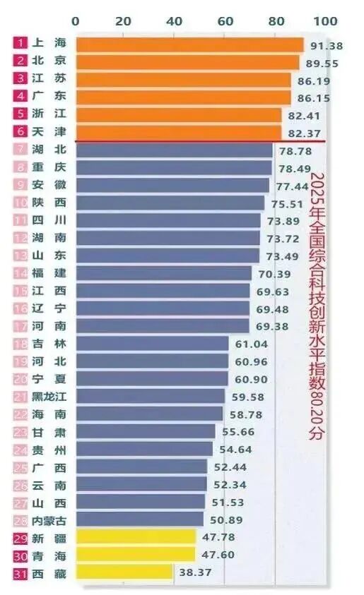 经费大幅增长的背后,是近年来上海科技创新生态的持续优化。中国科学技术发展战略研究院编制的《中国区域科技创新评价报告2025》显示,上海的综合科技创新水平在各省区市中排名第一。这份报告的评价指标不以存量规模为主,而是用结构化指标反映各地创新投入产出和组织效率,客观评价地区创新生态的赋能水平。